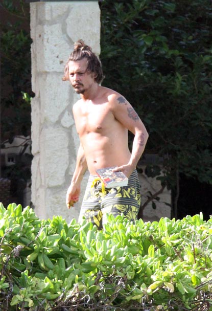 Johnny Depp takes some time to lay out in the sun and do some reading on his day off of the set of _Pirates of the Caribbean 4._